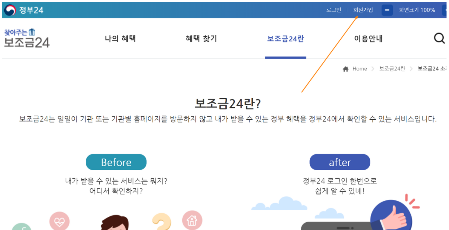 보조금24 홈페이지 바로가기