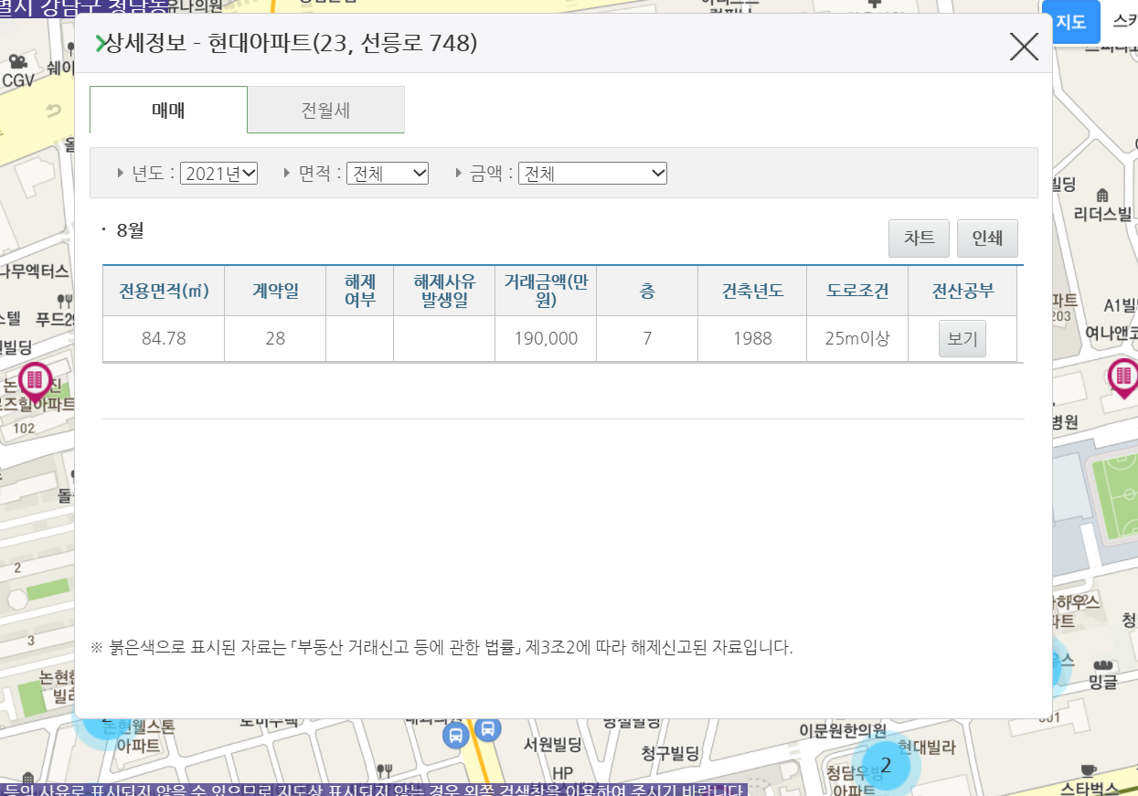 - 전월세: 보증금, 월세 정보 등을 년월로 확인할 수 있습니다.