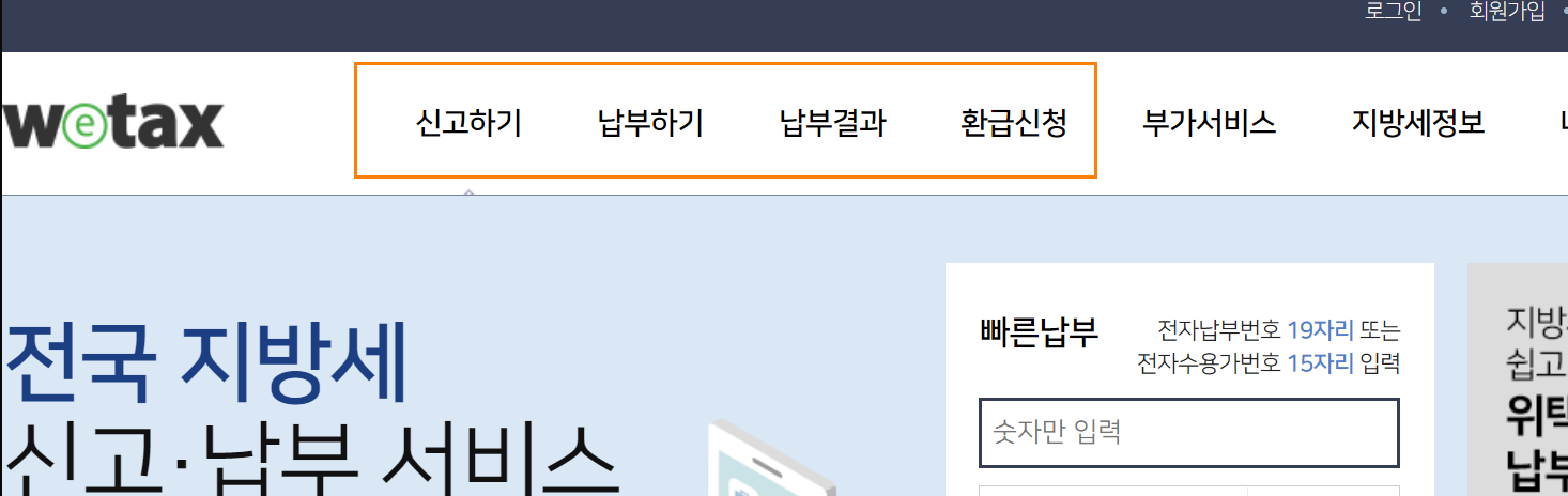 주의해야 할 점은 만약 서울, 부산, 인천에 거주하는 사람 중 지방세를 납부하려는 분이라면 위택스 홈페이지가 아닌 이택스(Etax) 홈페이지를 이용해야 한다는 것입니다.