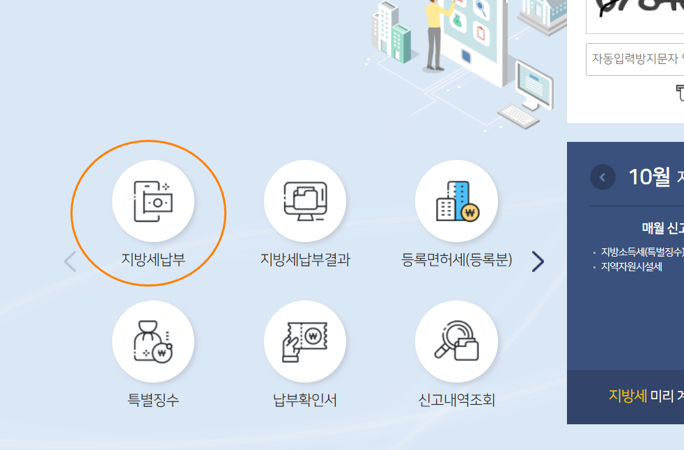 1. 메인화면에서 지방세납부를 클릭해보겠습니다.